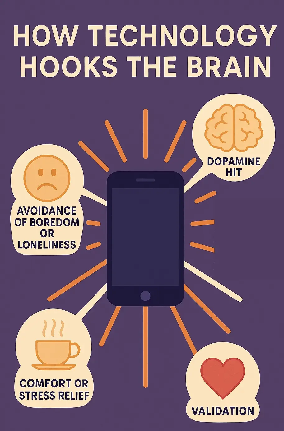Technology connects us, but it can also consume us. What starts as a quick distraction can turn into hours lost to scrolling, gaming, or online content. For some, it’s a way to numb out from stress or loneliness; for others, it becomes a cycle that’s hard to break even when you want to.