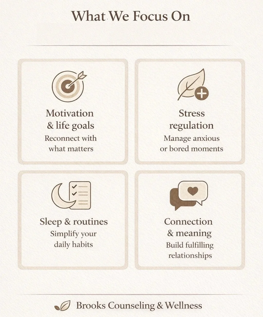 The goal is to build skills you can use on your own so you feel confident creating a fulfilling life, with gaming as a healthy choice rather than a coping trap.
